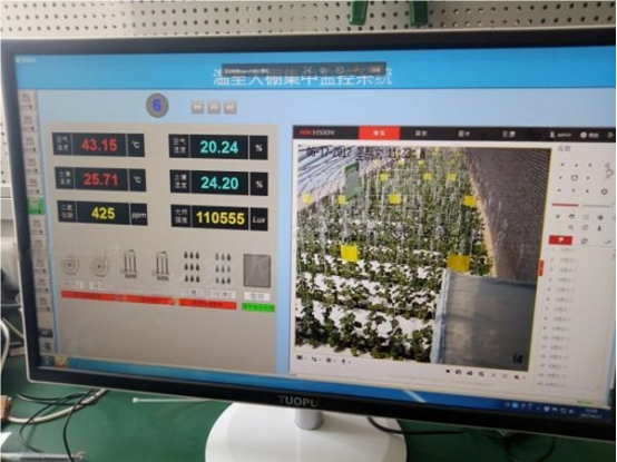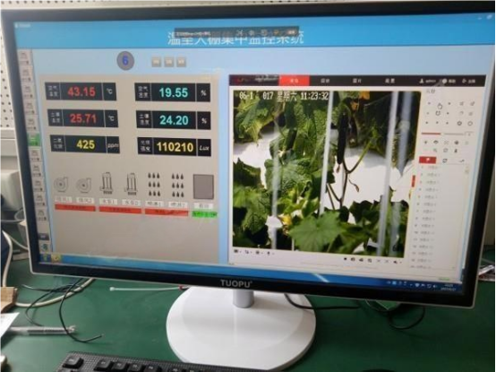 顯示裝置實時顯示溫室內(nèi)的溫濕度、光照度等數(shù)值,能夠更加一目了然地展示溫室大棚數(shù)據(jù)全貌。